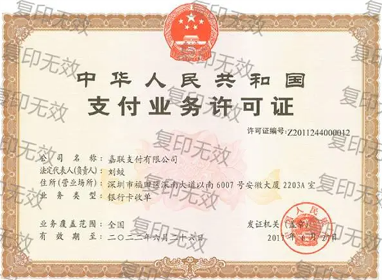 【嘉联支付】成立于2009年,是中国人民银行批准授予《支付业务许可证》的第三方支付机构,专注于为企业用户提供收单服务和向个人用户提供个人支付服务,业务遍及全国337个城市,年交易额近1.5万亿。